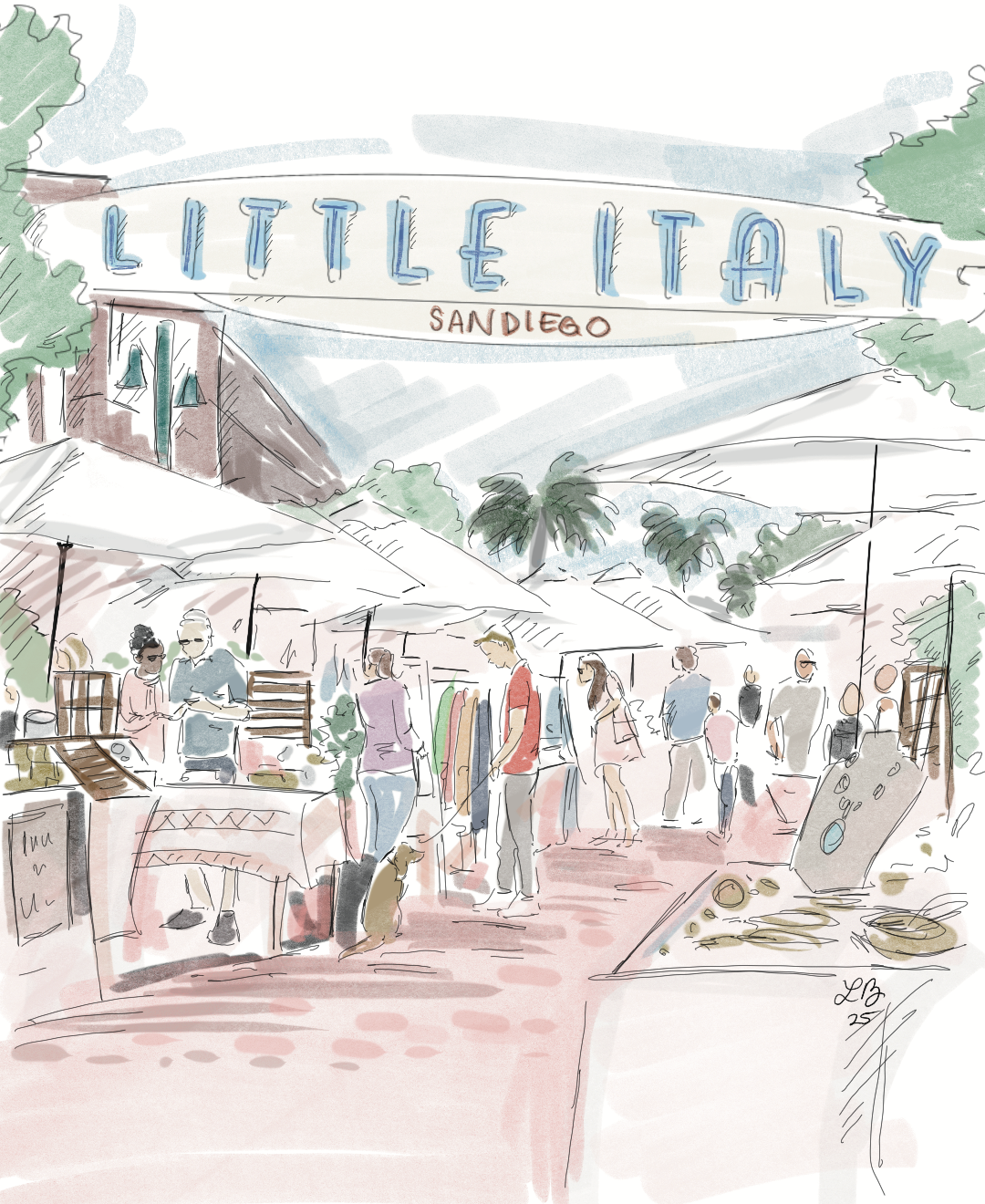 These illustrations were created in collaboration with the Female Maker Market as branded visuals for social media, web, and promotional materials. Each piece celebrates the market’s diverse locations, vibrant creative community, and the variety of seasons and events they participate in. From Little Italy in San Diego to Lido Marina Village in Newport Beach, the illustrations aim to convey the welcoming spirit of the market and highlight the collective of female makers who bring each space to life.