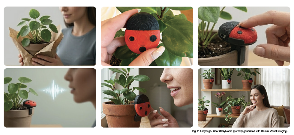 As artificial intelligence becomes more ingrained into everyday elements of life, our team began to question how AI could be applied to the natural world and helping us better understand plants. As such, we formed this study to in a sense “Give voice to these plants,” and help us learn more about them. Our study combines AI through conversational agents with plant imaging software of common apps and identifiors. Our goal was to merge both into a physical prototype that still allows users to engage with the natural world (without the distraction of an iphone), while also being able to converse with the gadget naturally and recieve in depth, personalized answers that were unique to their specific plant’s needs and conditions.